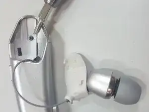 Сначала снимите резиновую крышку с правой стороны наушников, чтобы открыть скрытый винт.