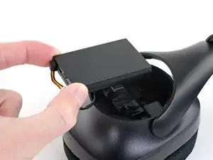 Аккумулятор всё ещё подключён к гарнитуре кабелями в нижней части выемки. Не пытайтесь полностью вынуть аккумулятор до его отключения.