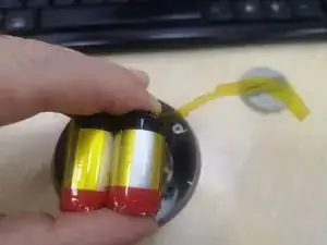 Замените двустороннюю ленту на металлической пластине и прикрепите её к аккумуляторам.
