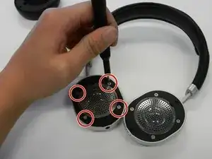 Удалите четыре винта длиной 5 мм из наушника с помощью отвертки Y1 Triwing.
