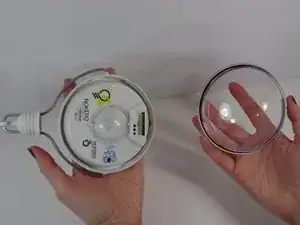 Возьмитесь за прозрачную крышку и белый корпус и поверните крышку против часовой стрелки.