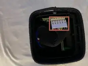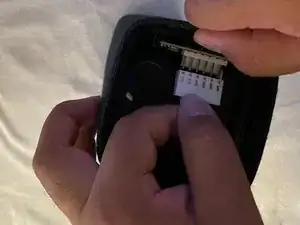 Кабель, соединяющий аккумулятор с громкоговорителем, прикреплен к маленьким контактам. Вы можете использовать руки, чтобы немного покачать аккумулятор, чтобы его вынуть.