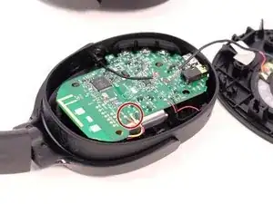 В завершение аккуратно поднимите плату от амбушюра, чтобы открыть аккумулятор под ней.