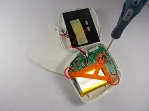 Используйте крестовую отвертку, чтобы удалить три винта, крепящие держатель аккумулятора к корпусу устройства.