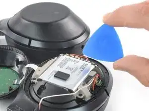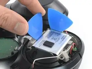 Подденьте медиатором, чтобы приподнять аккумулятор. Из-за клея под аккумулятором может потребоваться небольшое усилие.