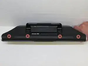 С помощью отвертки Phillips #1 удалите четыре винта по 5 мм, которые находились под четырьмя резиновыми накладками.