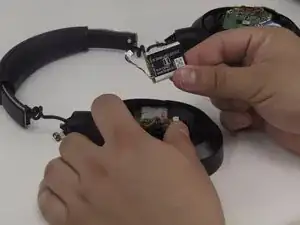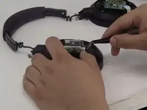 Переверните правый наушник так, чтобы корпус оказался вниз.
