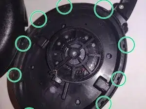 Сначала нужно снять амбушюр. Он прикреплён к корпусу с помощью небольших штифтов. Бережно обращайтесь, чтобы не сломать их. Эти штифты видны, если приподнять накладку вверх. Затем можно использовать тонкий пластиковый инструмент, чтобы вынуть картонный слой из этих штифтов.