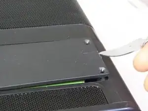 Поместите металлическую лопатку между небольшой щелью крышки батареи и устройством, и приложите давление вниз.