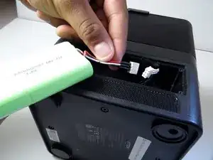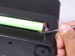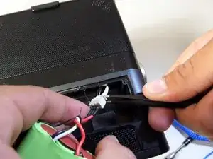 Чтобы удалить аккумулятор, одной рукой потяните за провода аккумулятора, другой рукой используйте пинцет для потягивания за соединительный штырь динамика.