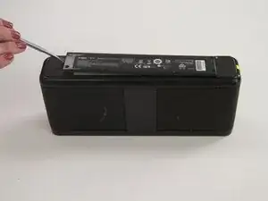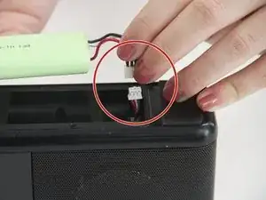 Отсоедините аккумулятор от устройства, сняв провода с белого соединительного блока.