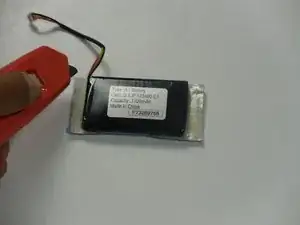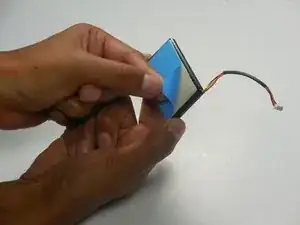 Поместите обратную сторону аккумулятора на клейкую сторону двустороннего скотча.