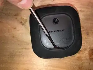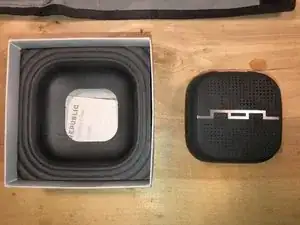 Перед нами Bluetooth-колонка Sol Republic Punk, которая перестала держать заряд. Неудивительно, учитывая, что аккумулятору уже девять лет, что он перестал заряжаться :-). На самом деле, по словам владельца, колонка работала отлично и за ней хорошо ухаживали. Состояние устройства на высоте для своего возраста, и она даже хранилась в оригинальной коробке.