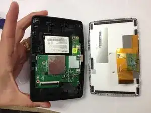 Снова подключите жёлтый ленточный кабель и соедините экран с задней панелью.