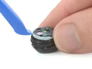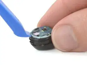 Используйте инструмент для вскрытия, чтобы отсоединить верхнюю часть корпуса наушника от платы, поддев разъём и вынимая его из гнезда.