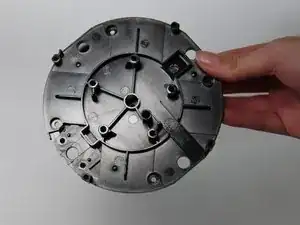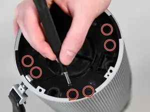 Отвёрткой Phillips #000 удалите восемь винтов длиной 10 мм с пластикового диска внутри серой решётки динамика.