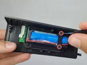 Удалите два винта с головкой Phillips #0 длиной 9 мм из держателя аккумулятора.