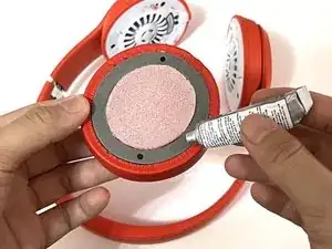 Нанесите тонкий слой клея по серому периметру новых амбушюр.