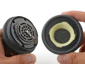 Если вы заменяете аккумулятор, вам нужно снять амбушюр только с стороны, где нет микрофона.