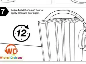 Последний и самый важный шаг! Прикладывайте постоянное давление к амбушюрам, положив несколько книг и разместив наушники на них так, чтобы создать максимальное давление без чрезмерного изгиба оголовья наушников. Мы надеемся, что вам понравился этот простой教程, если у вас есть вопросы, не стесняйтесь обращаться к нам.