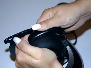 Осторожно потяните амбушюр от наушников, извлекая его из паза до полного отделения старых амбушюр.