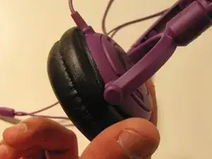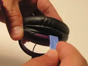 Отделите обивку от чашки наушника, потянув за обивкой в месте соприкосновения с пластиком чашки. Тяните осторожно, продвигаясь по всему периметру чашки наушника.