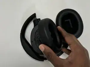 Удерживайте корпус наушников одной рукой, чтобы зафиксировать устройство, а другой рукой возьмитесь за амбушюр, который собираетесь заменить.