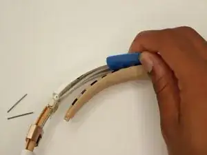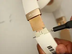 Немного согните шарнир, затем открутите два винта диаметром 0,5 мм отверткой Phillips #000.