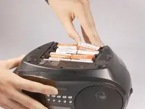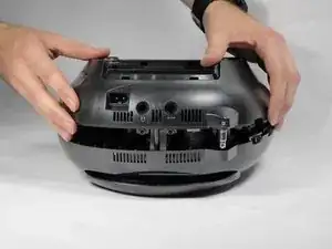 Отключите и снимите сетевой шнур. Переверните бумбокс вверх дном.