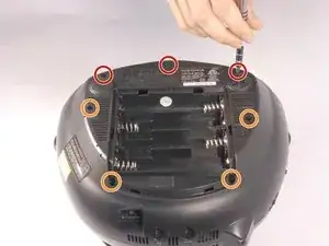 Снова переверните бумбокс вверх дном. С помощью отвертки Philips PH1 или плоской отвертки #3 снимите три черных винта 14 мм.