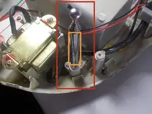 Сдвиньте нижнюю оболочку назад немного перед тем, как поднимать её вверх. Пластиковая нижняя часть поднимется прямо, но имеется выступ, который заходит под чёрную ручку, и его сначала нужно освободить, как показано на изображении слева.