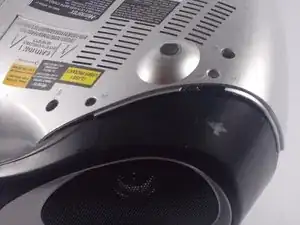 На нижней части вашего бумбокса всего 12 винтов с крестообразным шлицем. Местоположение винтов, необходимых для снятия нижней панели, обведено красным на изображении слева.