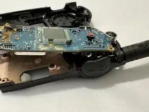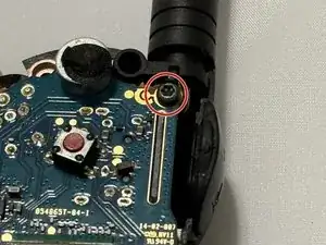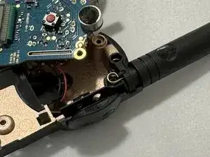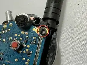 Переустановите 1 винт T8, который крепит плату к задней части корпуса через антенну.