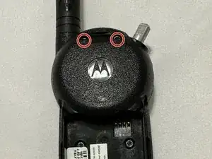 Под этим отверстием для ремня в верхней части радиостанции скрыты два винта T8.