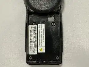 Снимите батарею, нажав на батарею в нижней части радиостанции и аккуратно поднимая её под углом.