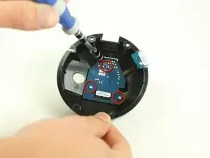 Используйте отвертку Torx T6, чтобы ослабить три винта длиной 0.8 мм, удерживающих дочернюю плату внутреннего купола на месте.