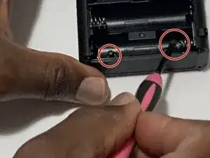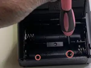 Используйте мини-отвёртку, чтобы удалить два винта из отсека для батарей.