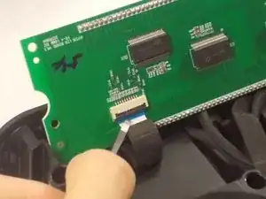 Приподнимите чёрную защёлку, удерживающую шлейф, и осторожно извлеките шлейф из разъёма.