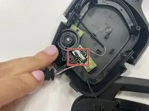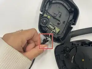 Поднимите небольшой элемент, зафиксированный кабелем внизу ушной детали, чтобы увидеть каждый провод.