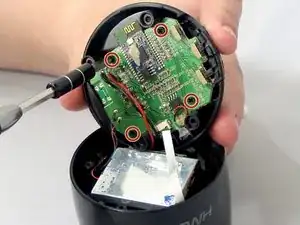 Используйте крестовую отвёртку №1, чтобы вывернуть четыре винта длиной 6 мм, которые крепят материнскую плату к основанию устройства.