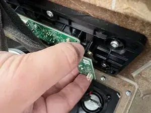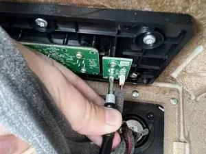 Используйте крестовую отвертку, чтобы выкрутить два винта 9,6 мм, которые крепят AUX-плату к рамке колонки.