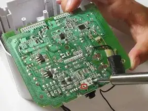 Чтобы удалить неисправные провода AUX порта, распаяйте два провода на белой прямоугольной области платы.