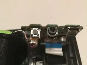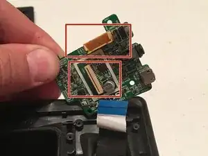 Извлеките аккумуляторный блок и зеленую плату, чтобы увидеть шлейф и провод, идущий от аккумуляторного блока к плате.