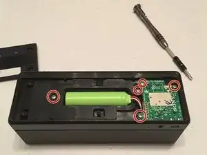 Удалите 5 винтов с крестовой головкой, крепящих аккумулятор и плату. 2 винта крепят аккумулятор, а 3 - плату.