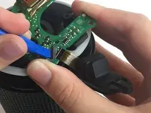 Используя синюю пластиковую открывалку, подденьте небольшой черный зажим, соединяющий AUX/USB порт с нижней платой.