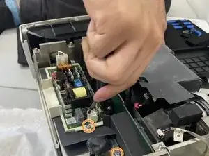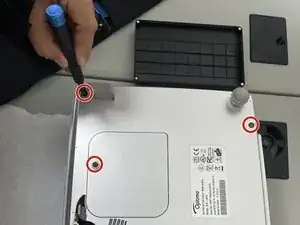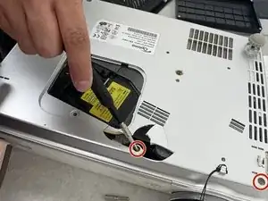 Удалите два винта размером 2 мм с помощью крестовой отвертки, которые фиксируют источник питания.