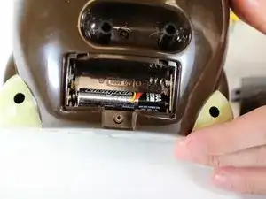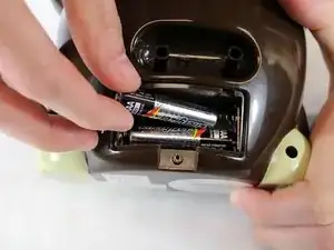 Мы откроем отсек для батареек и заменим две батарейки AAA.