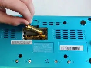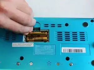 Сняв панель для батареек, извлеките батарейки. Используйте руки или пластиковую лопатку для извлечения батареек.