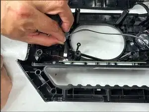 С помощью плоскогубцев или пинцета отсоедините кабель микрофона и провод кнопок от материнской платы.