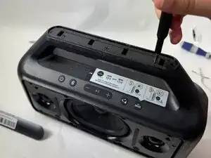 Отверткой с крестовым шлицем удалите 6 винтов на задней стороне динамика.